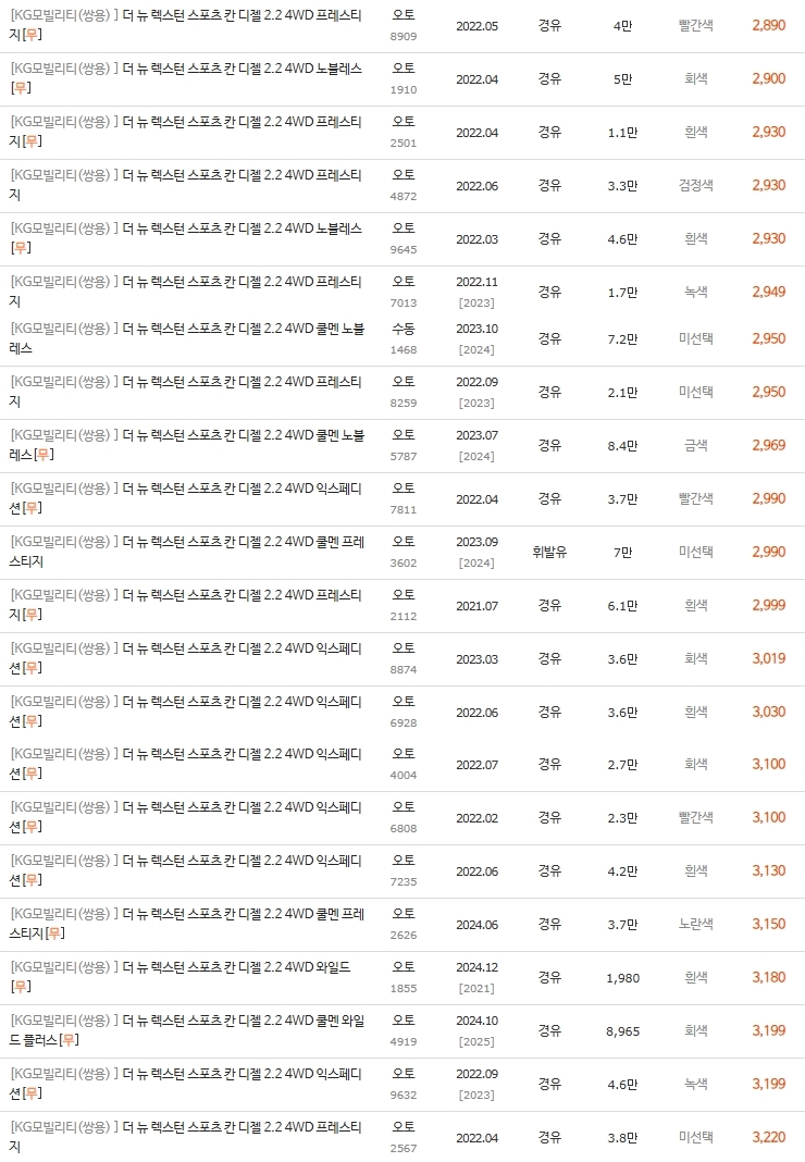 | 코란도스포츠 12~16년식 전기형 시세 완벽 분석 300~900만 실거래가 정리 (1) | 2025.11.13 |