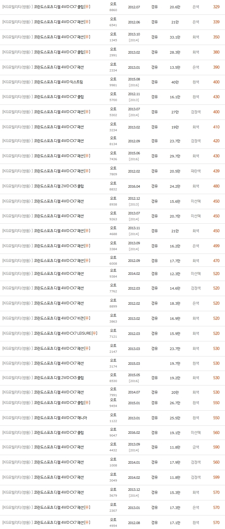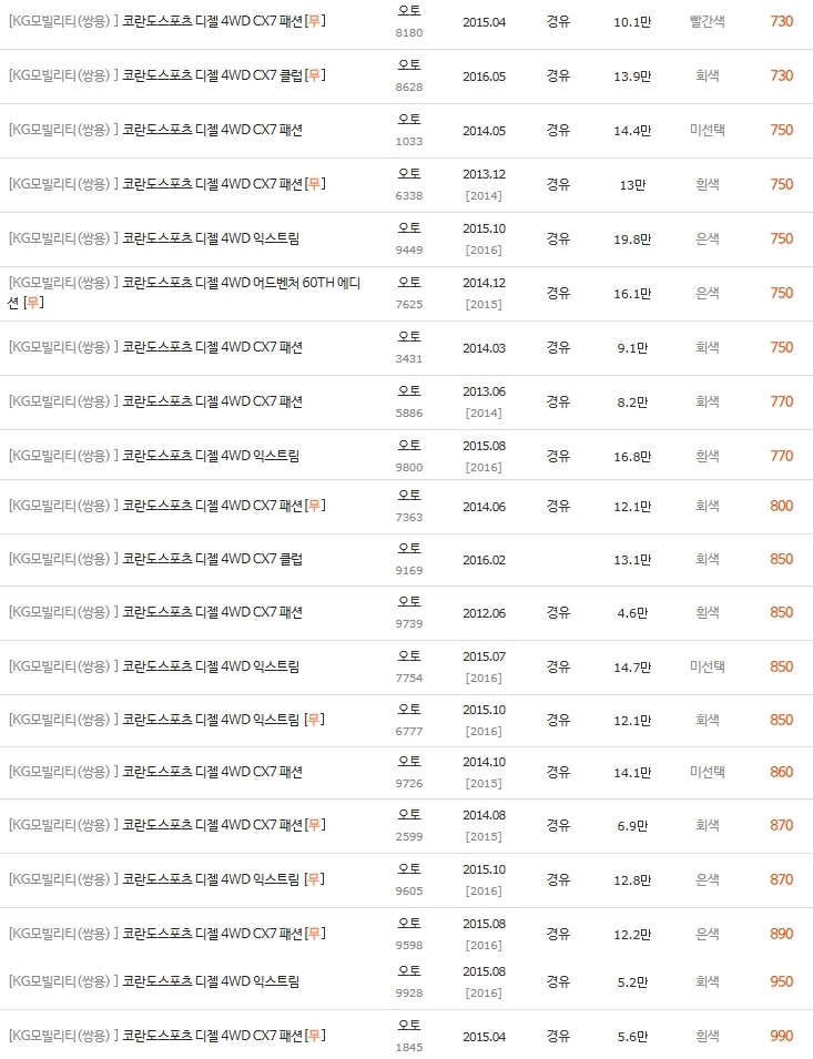 오늘은 많은 분들이 찾는 초기형 코란도스포츠(2012~2016년식) 중고차 시세표를