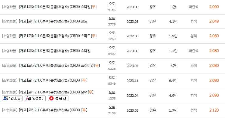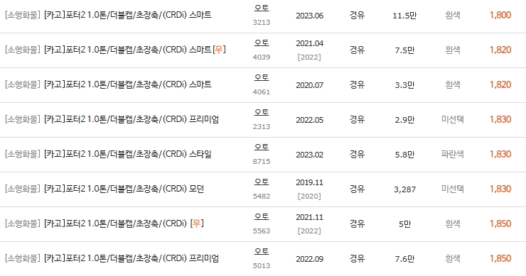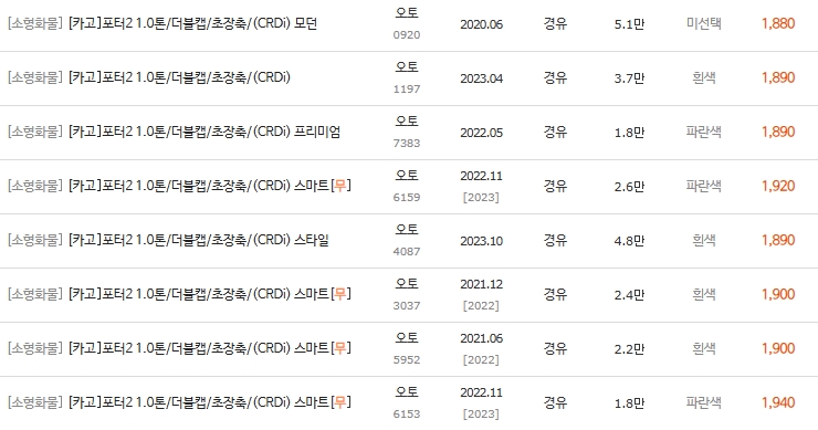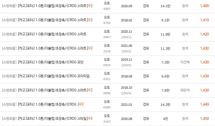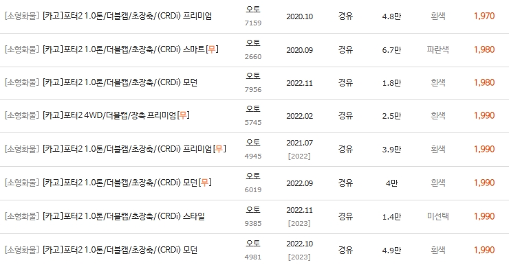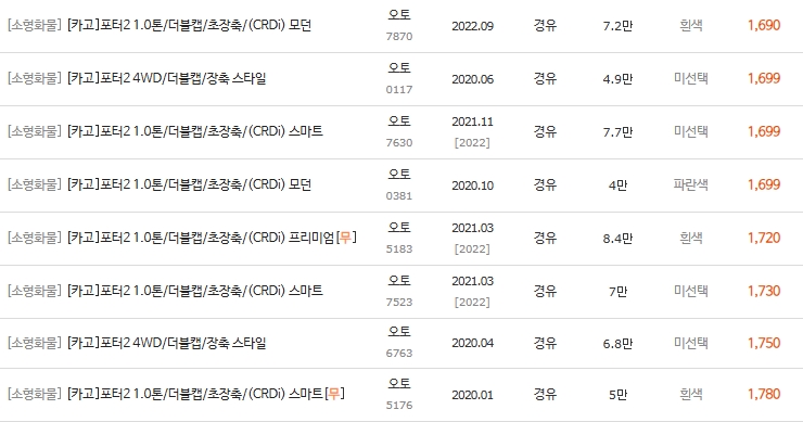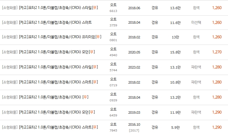 | [2025년 11월 최신] 포터2 내장탑 중고차 시세표 & LPG/디젤별 가격 완벽 분석 (0) | 2025.11.21 |