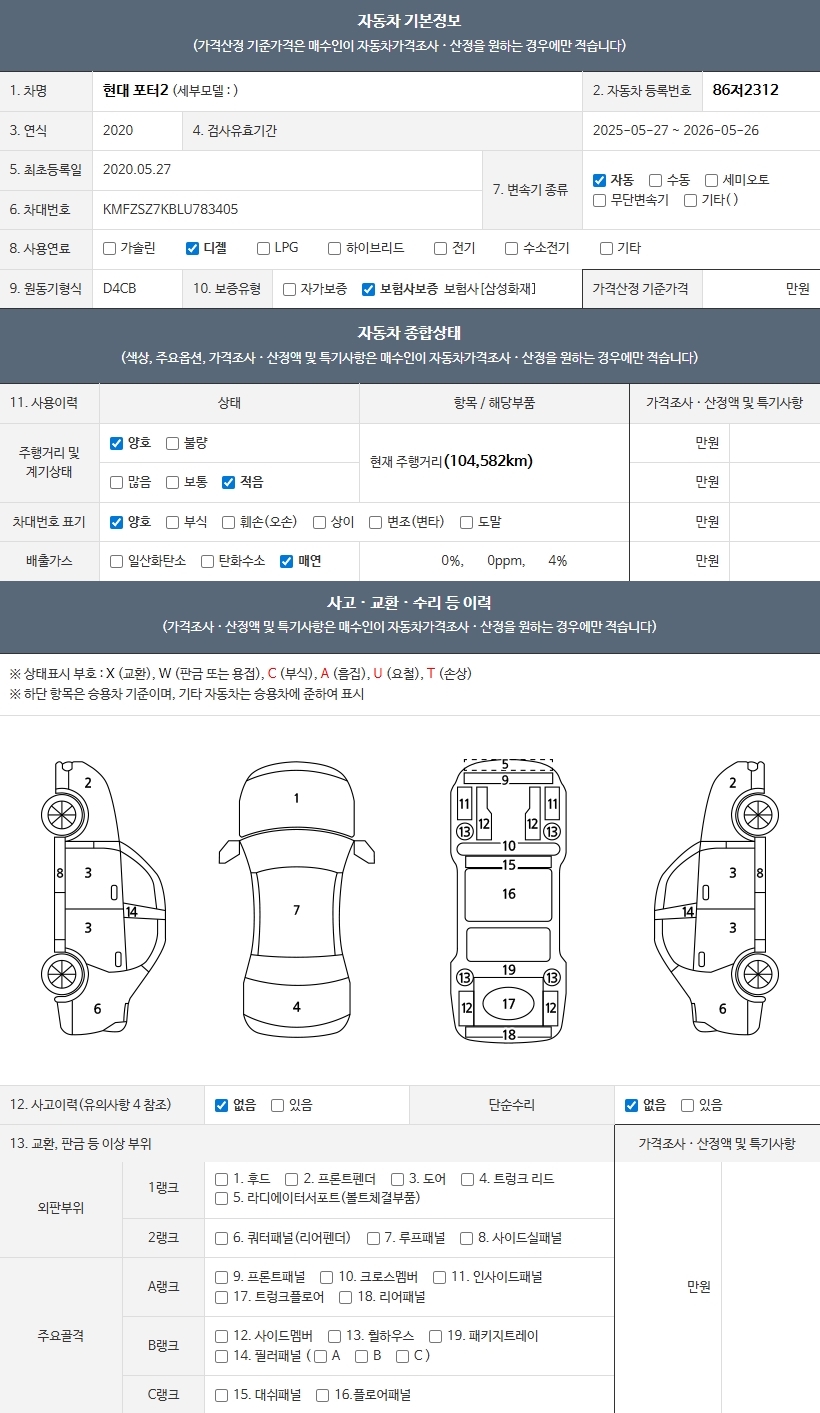 🚗 4. 실차 매물 분석: 포터2 내장탑 (디젤)