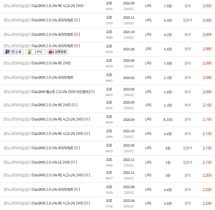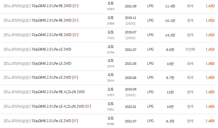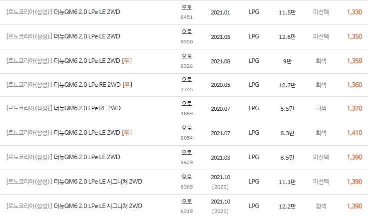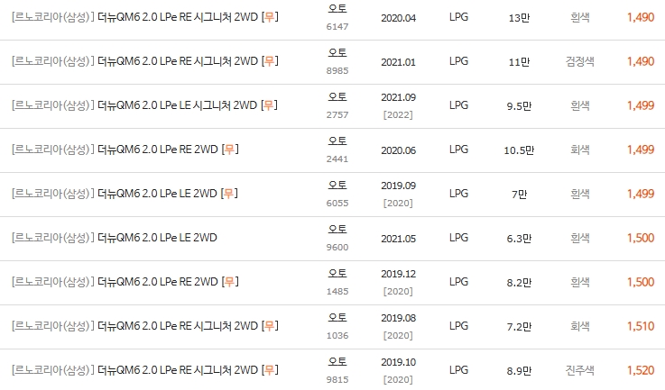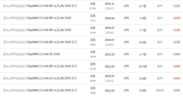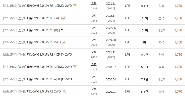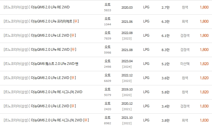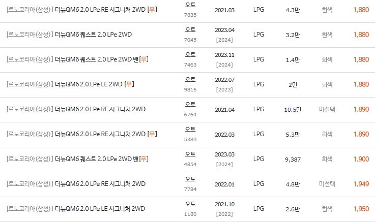 - 2인승 밴인 QM6 퀘스트 모델도 소수. 프리미에르 트림은 아직 소수입니다.