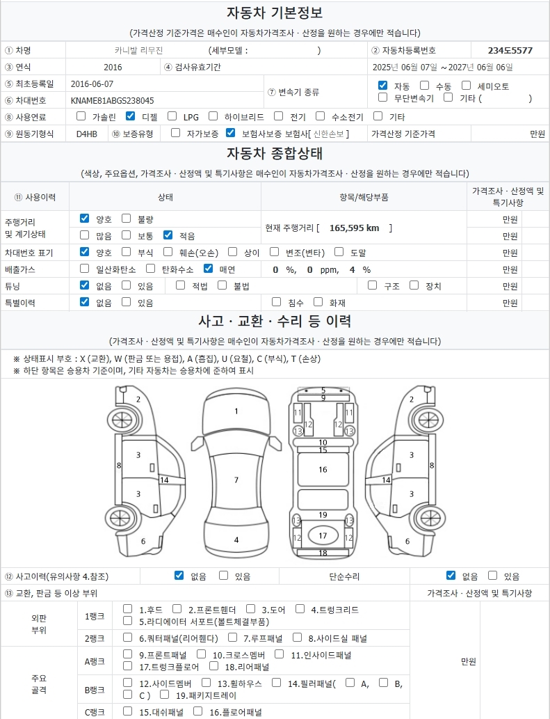 * 사고 유무: 단순무사고 (단순 교환 2곳 이력)