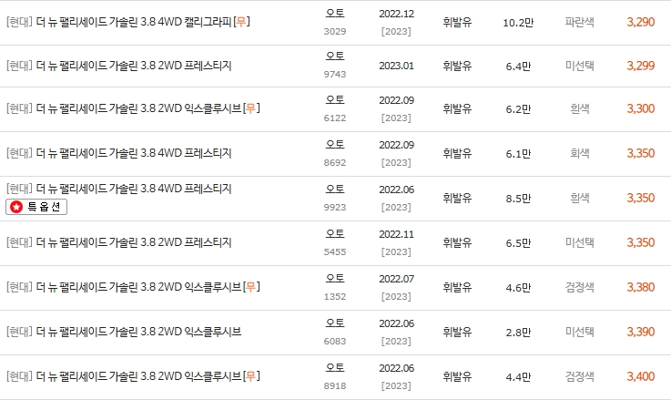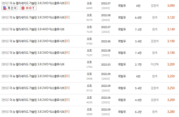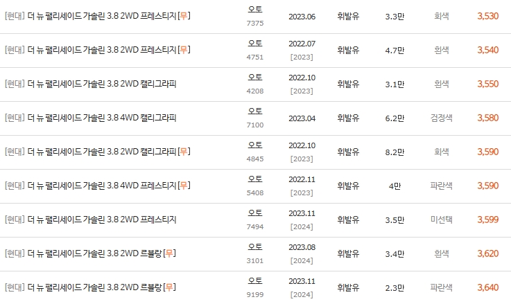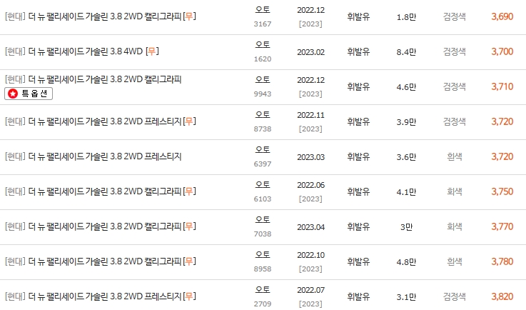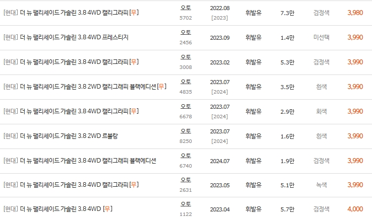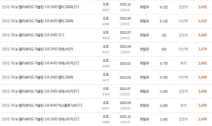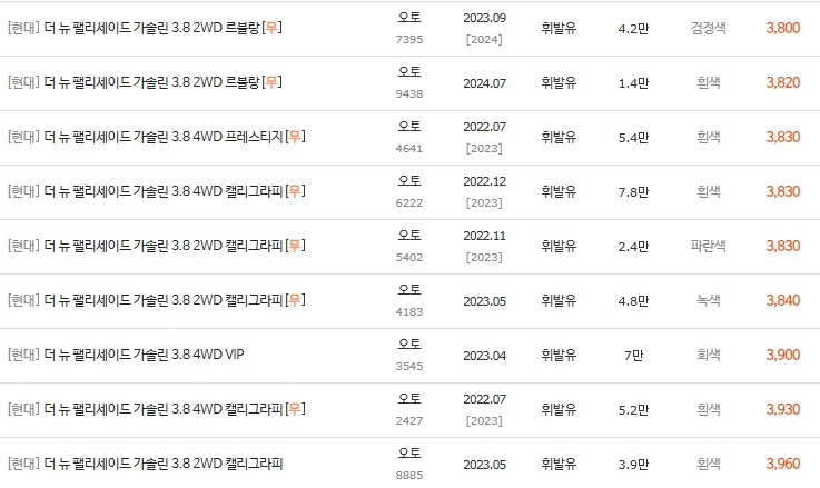 💰 더뉴팰리세이드 3.8 휘발유 중고차 시세표 분석 (2022년~)