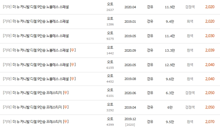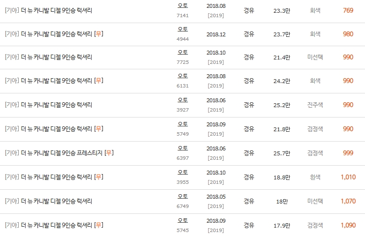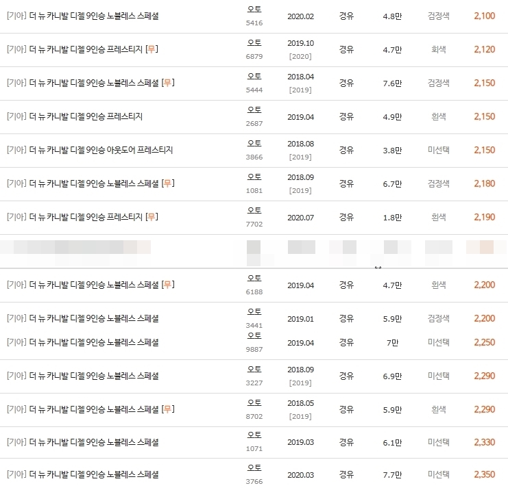 더 뉴 카니발 9인승 중고차 시세를 정리해 드렸습니다.