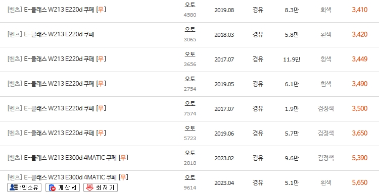 💰 W213 디젤 시세의 결과/효과 (1800만원 ~ 5600만원대)