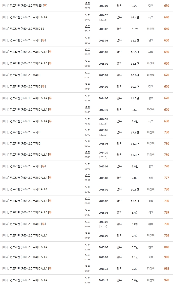 🔍 시세 파악 전 필수 체크: 미니쿠퍼 컨트리맨 엔진 및 옵션.