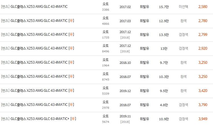 • 3,400만 원대: 19년식 43 AMG 다수 확인 (인기 구간)