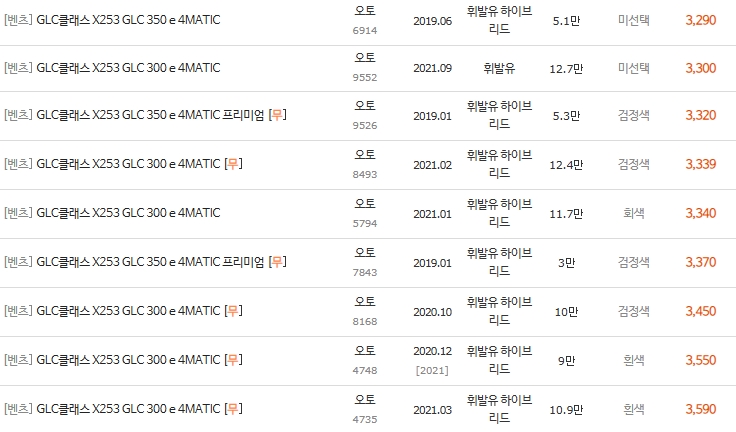 2. 벤츠 GLC 플러그인 하이브리드 중고차 시세표