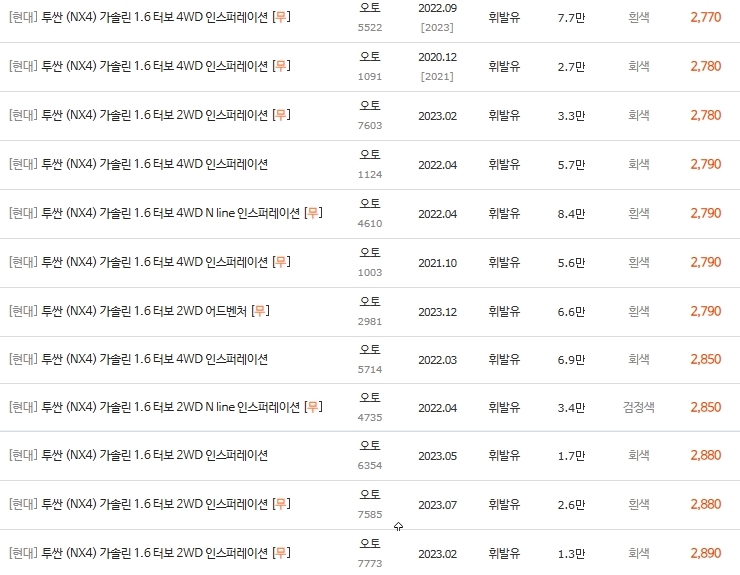 | 투싼 NX4 중고차 시세표 총정리 1.6 터보 휘발유 제원 및 옵션 비교 (0) | 2026.04.01 |
