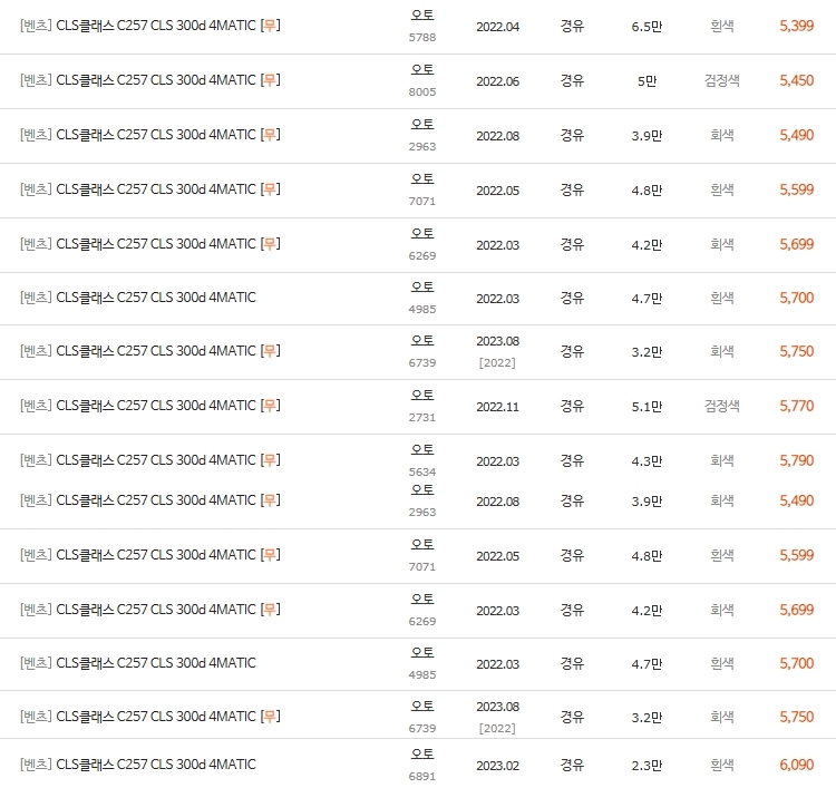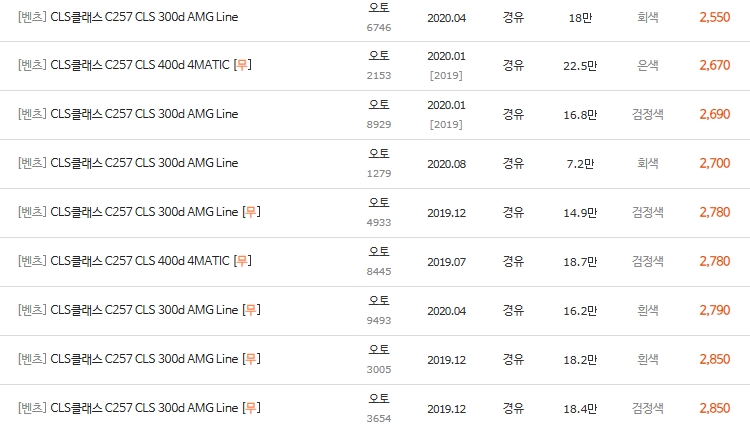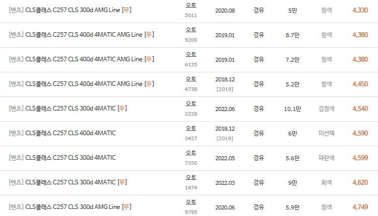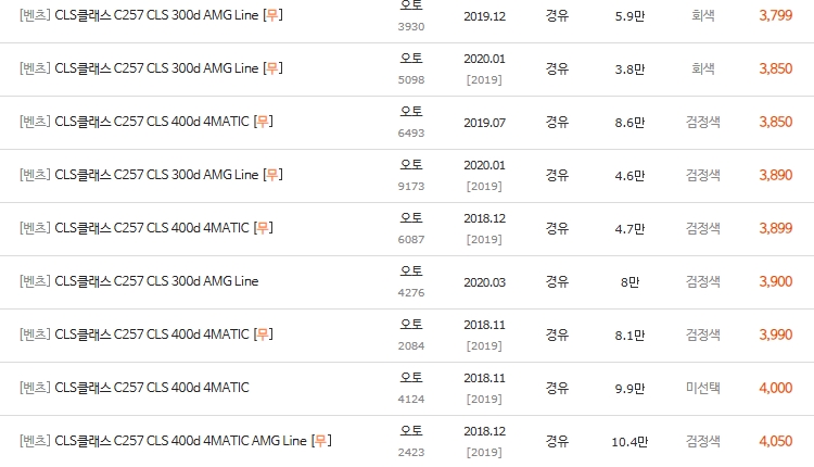 ⛽ 벤츠 CLS 중고차 디젤 모델 상세 시세표 (300d, 400d)