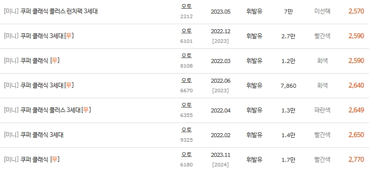 • 신차급 구간 (2,200~2,700만): 22~23년식 '클래식' 트림. 1만km대 신차급 컨디션과 보증이 남은 차량들이 포진해 있습니다.